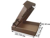 Самосборная картонная коробка 230*230*40 мм Т-23 (профиль B) с внутренними размерами: длина – 230 мм, ширина – 230 мм, высота 40 мм изготовлена из трехслойного бурого гофрокартона марки Т-23 толщиной 2.6 мм. Данный короб можете купить в любом количестве.